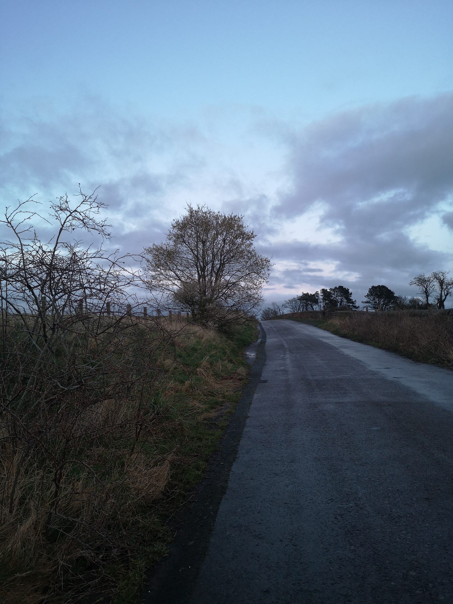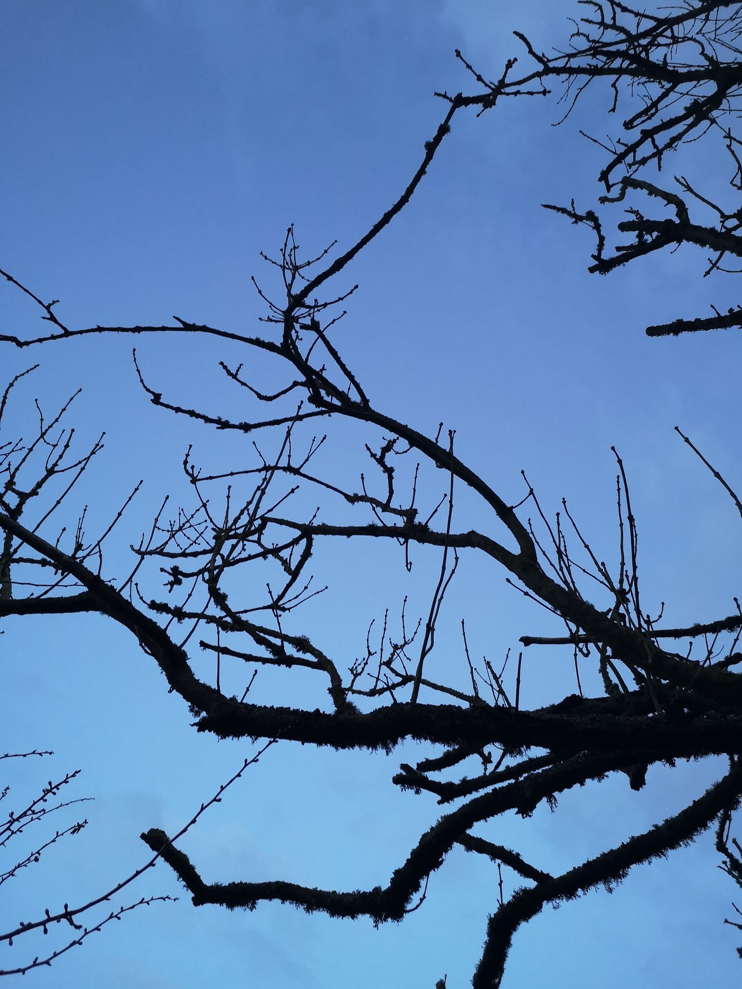 All the way up the road past gardens, I calm my anxious mind by naming trees as I pass, their bare branches hanging over the stone walls and spreading above me across the pavement. One of those techniques of counting and noticing your surroundings that’s so helpful when stuck in spiralling thought patterns, just tweaked and made into my own game.